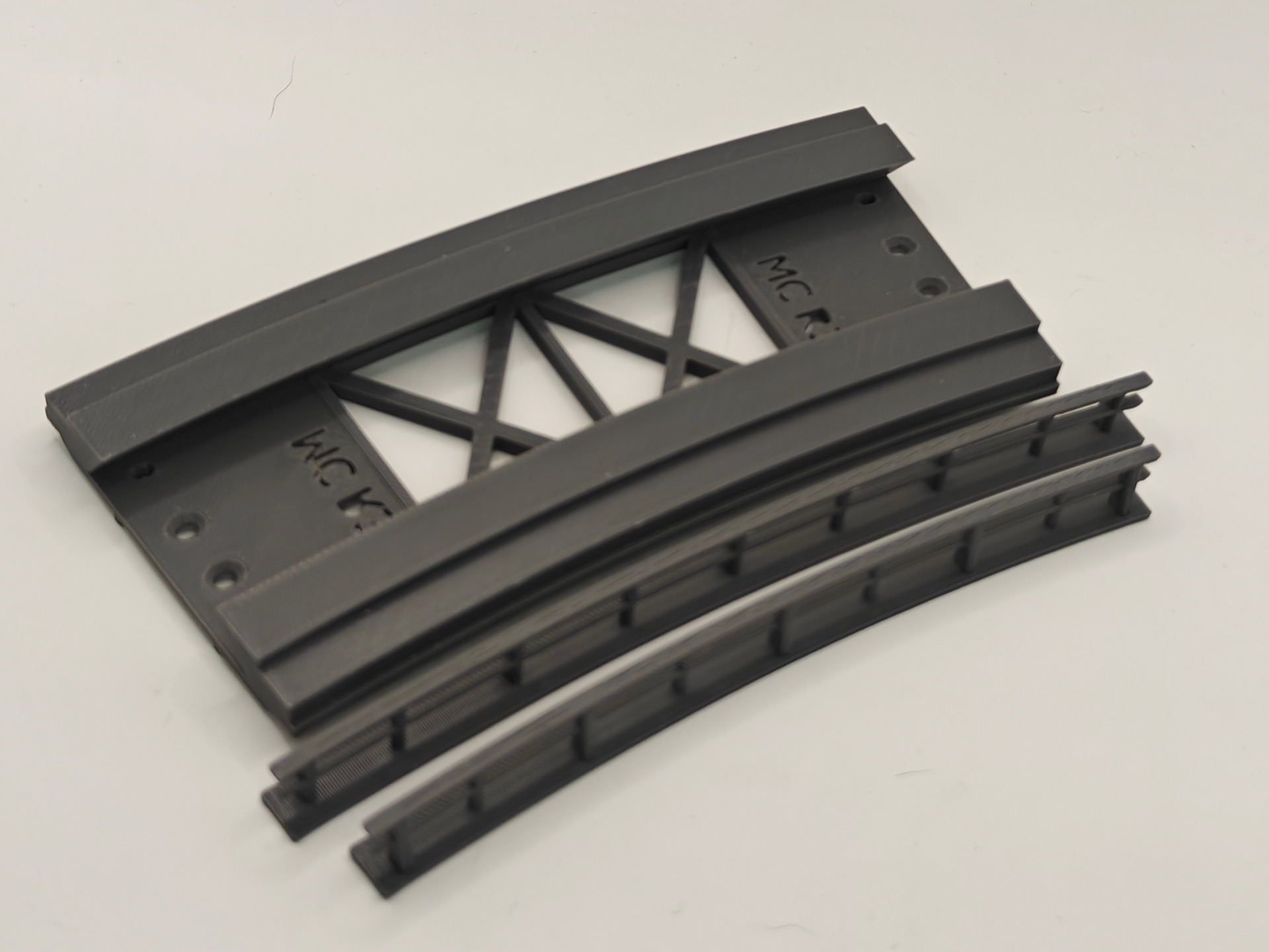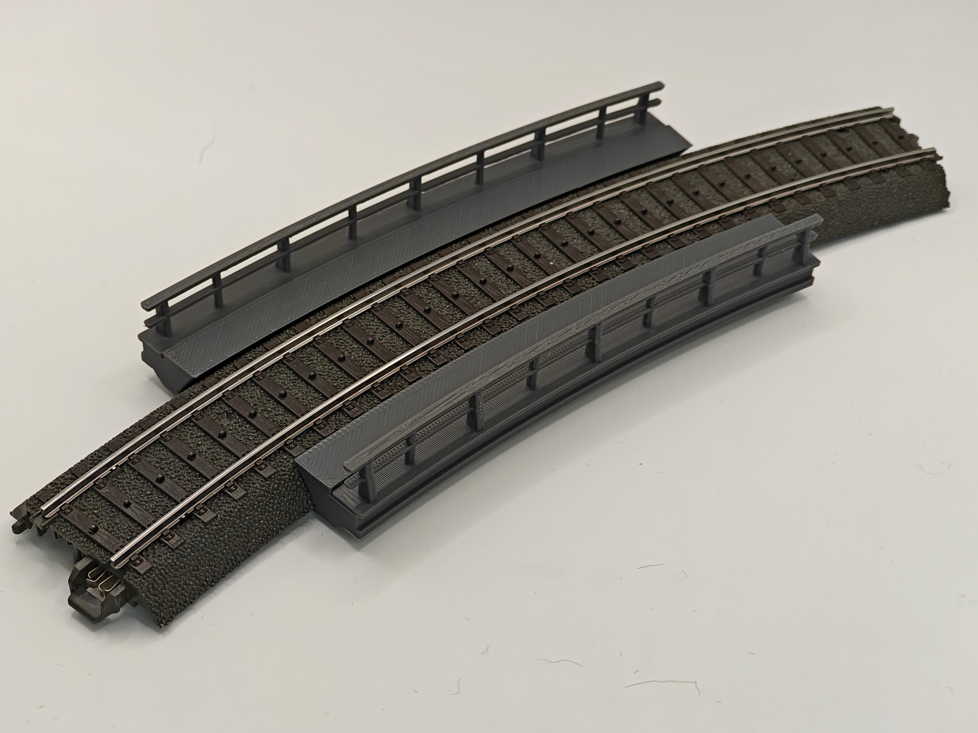Brostykke der passer til Märklin/Trix skinner. Man skal selv pålime siderne på. Brostykket passer til standard bropiller fra andre fabrikater, som.feks Märklin, Faller eller Kibri. Se i øvrigt vores bropiller