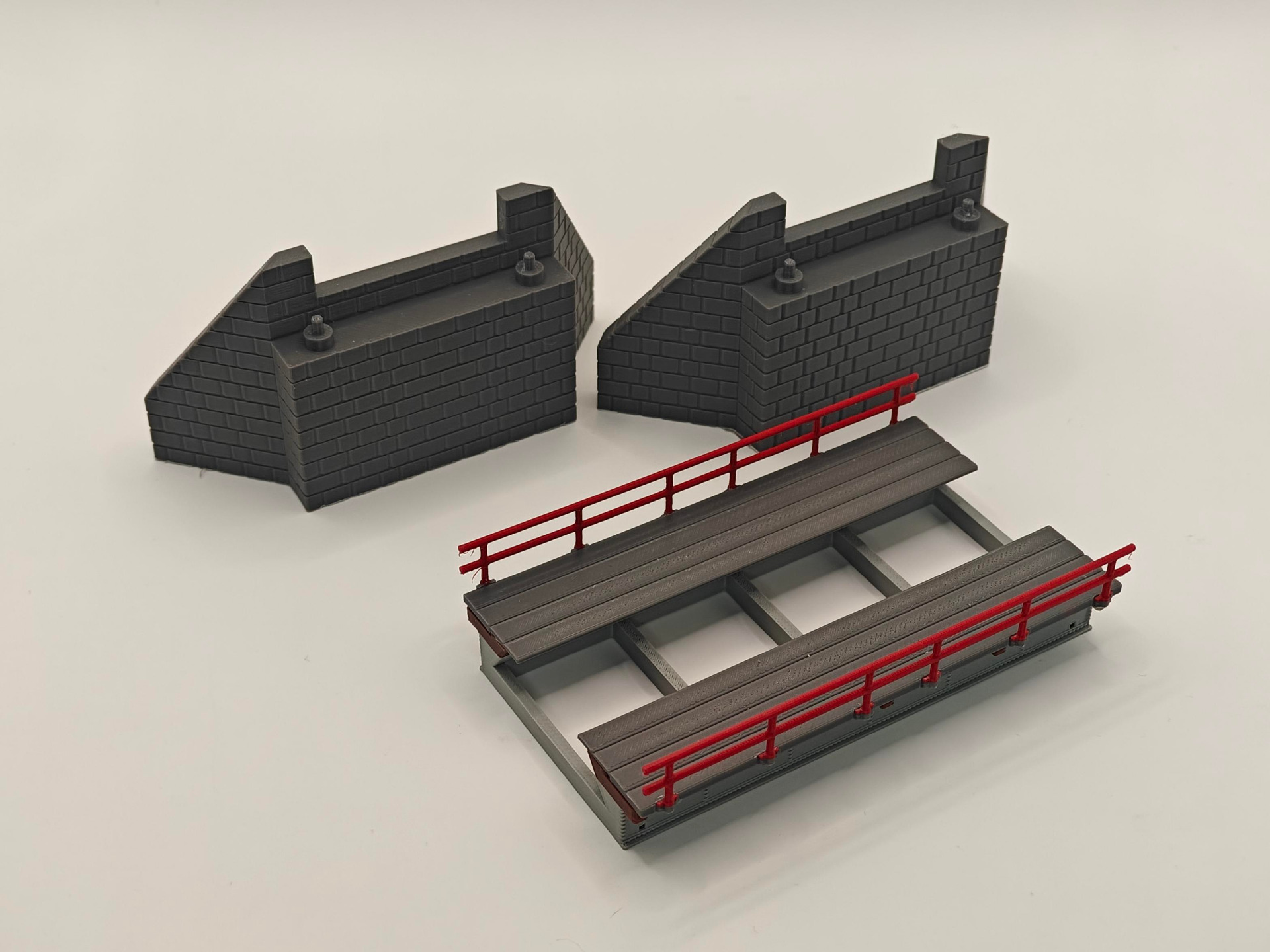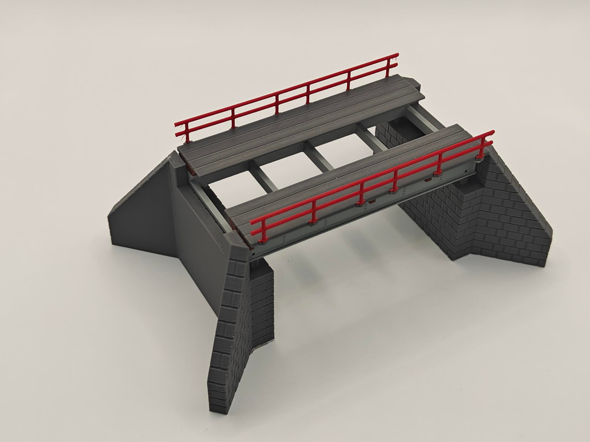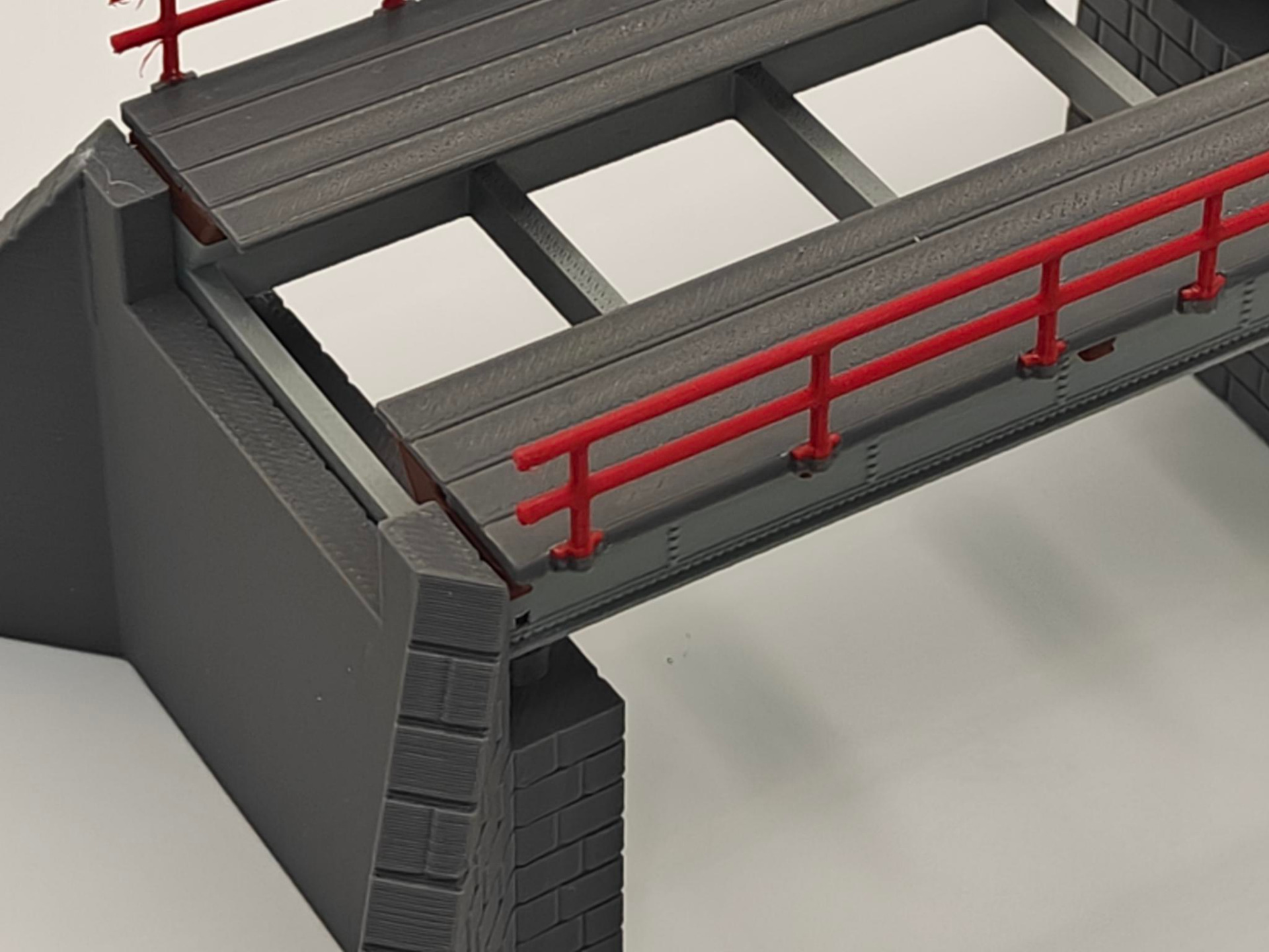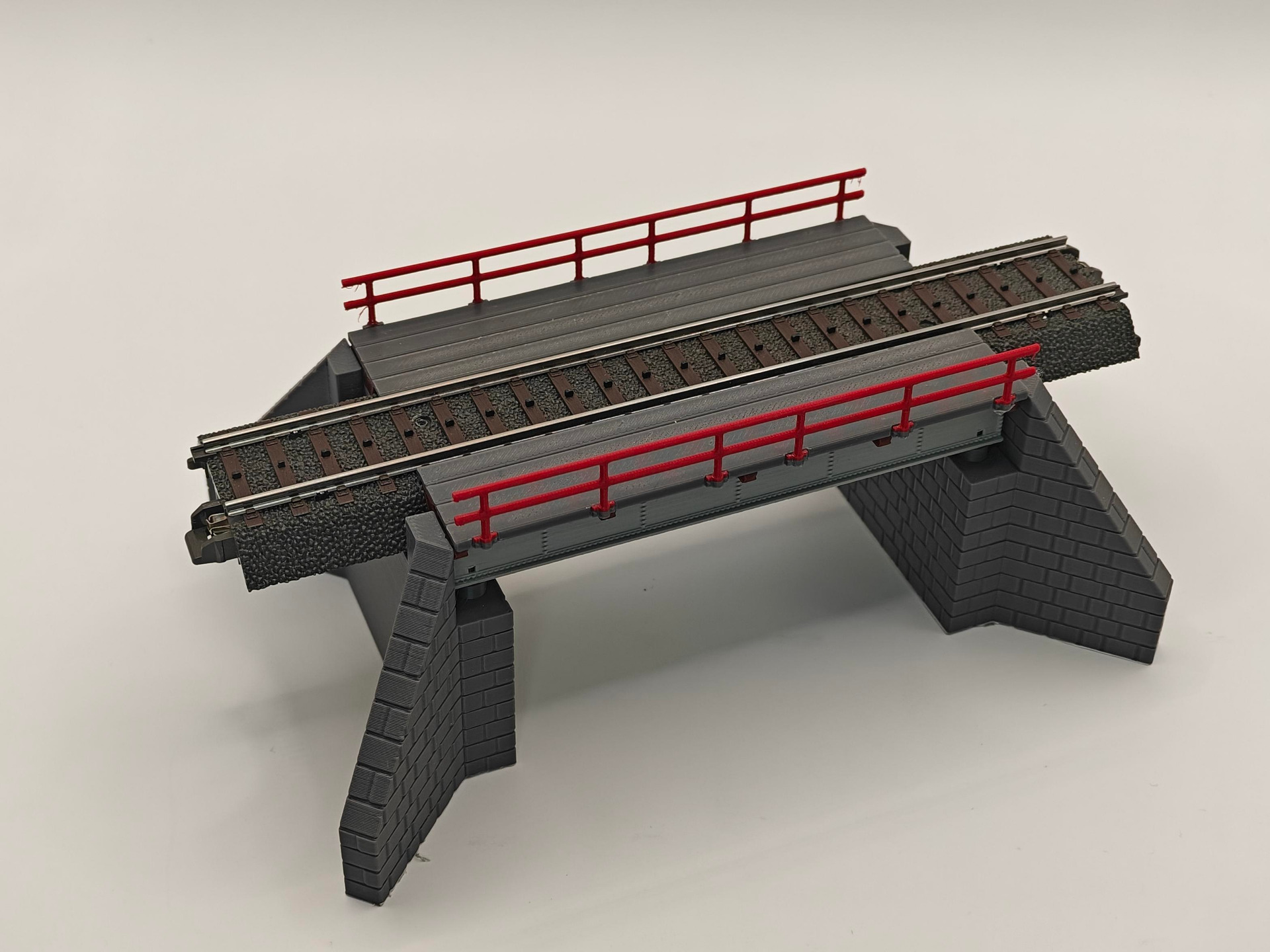 En tilnærmet kopi af jernbanebroen der gik over Vindinge Å. Broen ligger der faktisk endnu. Den er tilpasset så den passer til Märklin/Trix C skinner. Den er lavet i 4 farver